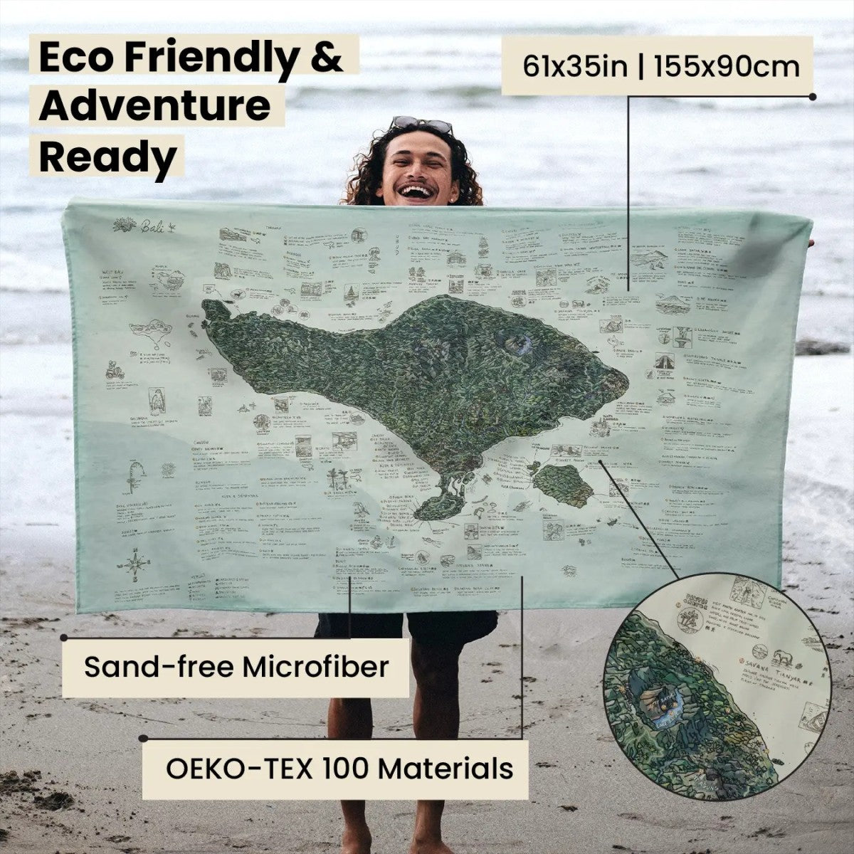 Awesome Maps Strandtuch / Badetuch "Bali Green Topography" (155x90cm)