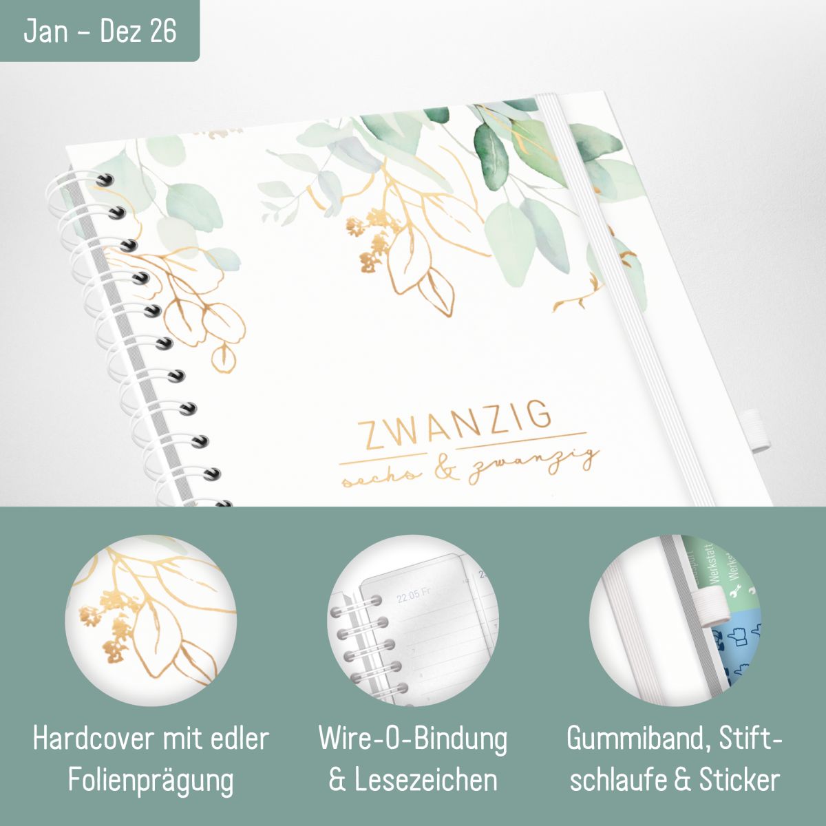 - NACHHALTIG & KLIMAFREUNDLICH - Planen mit gutem Gewissen: Der Umwelt zuliebe ist das reinweiße und extra dicke 120g/m² Premium-Papier FSC®-zertifiziert (FSC® N004440) und klimafreundlich bedruckt.