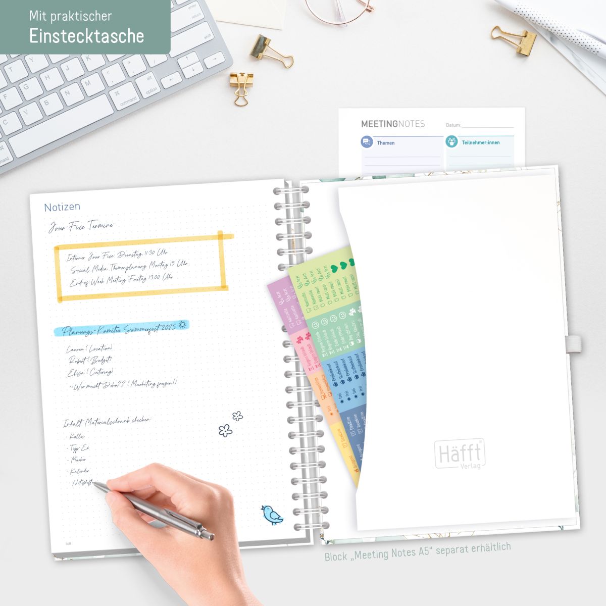 - DURCHDACHT & ÜBERSICHTLICH - Monatsvorschau für jeden Monat inkl. Habit-Tracker, Feiertage in DE | AT, Monats- und Jahresübersichten, Urlaubsplanung, Projektplaner, Meeting-Listen, Adresslisten und viel Platz für Notizen.