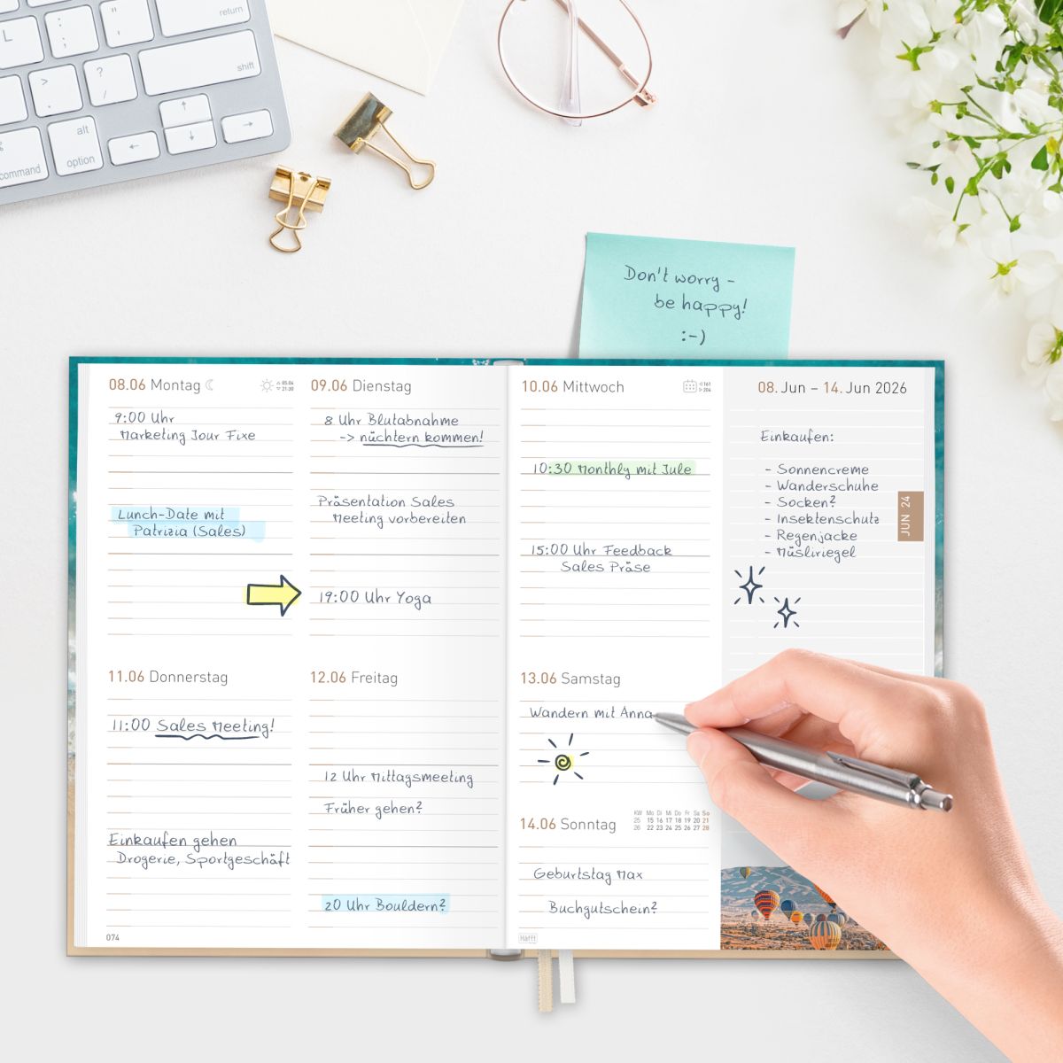 - TERMINPLANER 2026 A5 - Praktischer Wochenkalender mit 1 Woche auf 2 Seiten, wöchentlicher To-do-Liste & Notizfeld, Monatsübersichten, zwei Lesebändchen und vielen nützlichen Inhalten. JETZT NEU: Stärkeres 100g/m² Papier (statt 90g/m²)!