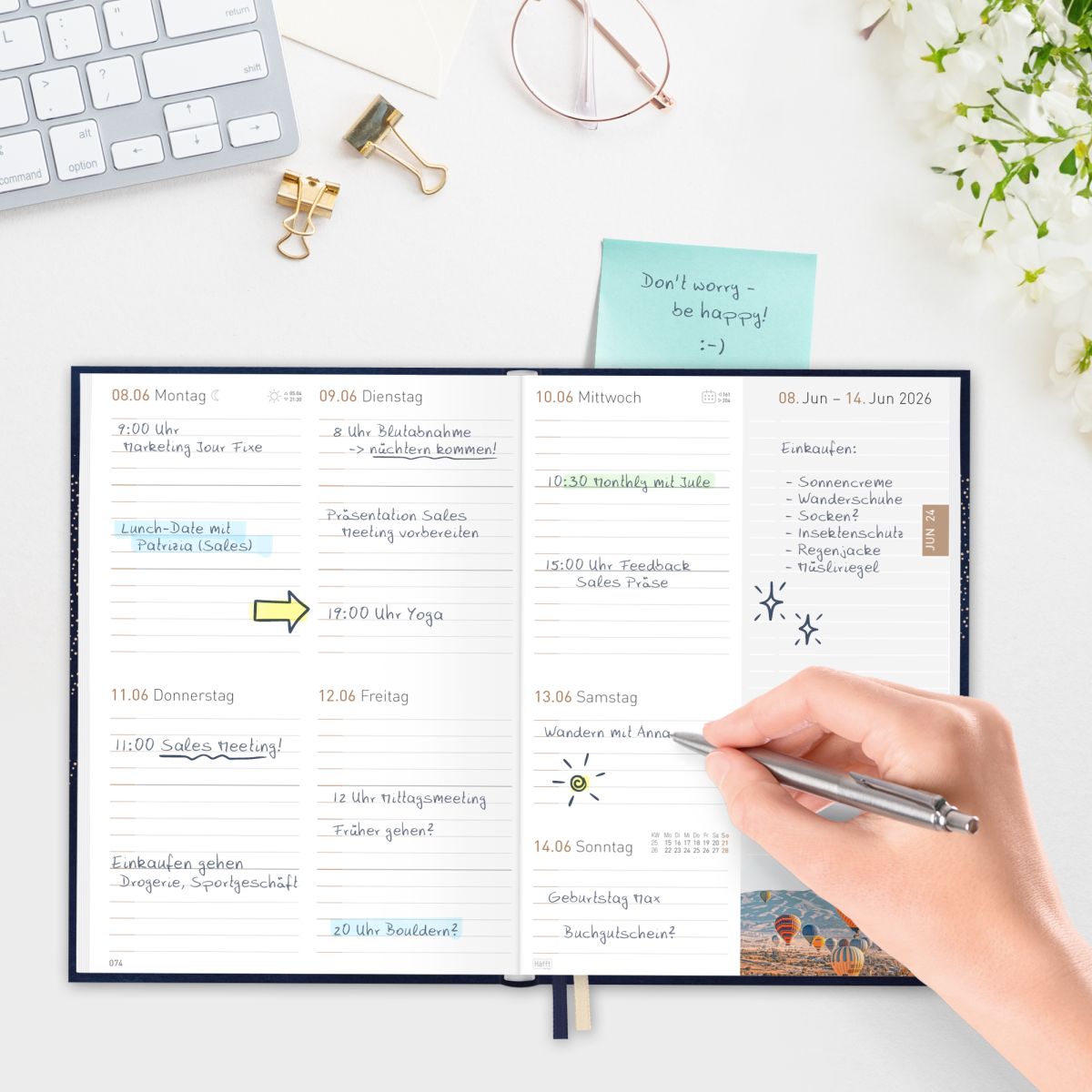 - LANGLEBIGER BEGLEITER - Der Einband mit matter Oberfläche und Glanzlack-Highlights ist robust und hochwertig verarbeitet, so dass die Freude am Planen lange anhält. Die aufwendige Fadenbindung sorgt für ein angenehmes Aufschlagverhalten.