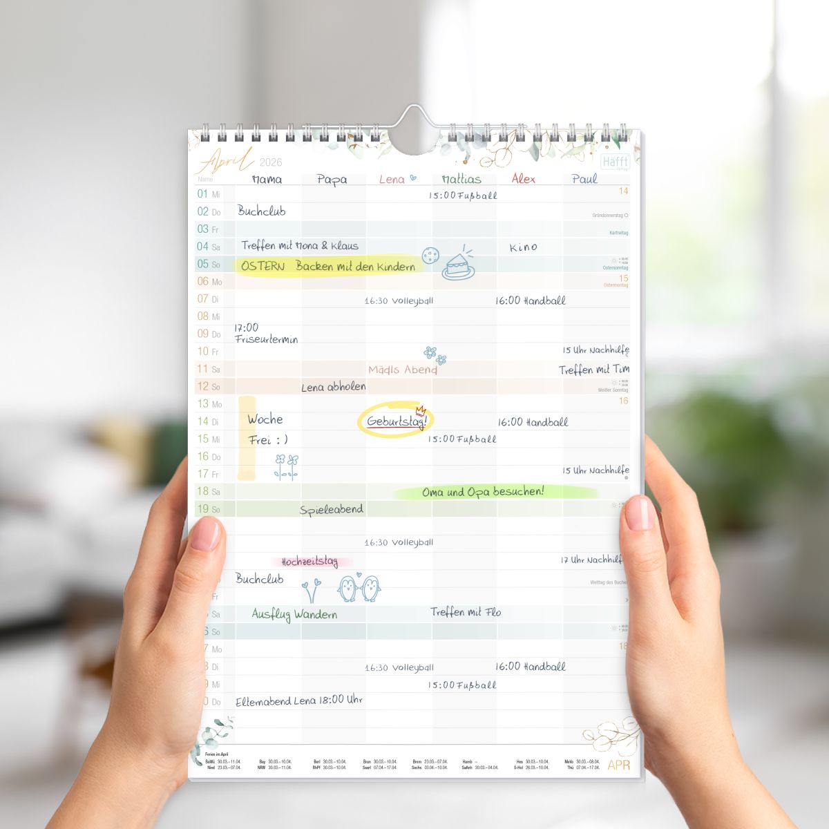 - WANDKALENDER FAMILIE 6-SPALTIG - Platzsparender Familienkalender kompakt von Juli 2025 - Dezember 2026 für bis zu 6 Personen inkl. Zeile für die Namen. Spalten können natürlich auch für gemeinsame Termine oder Geburtstage genutzt werden!