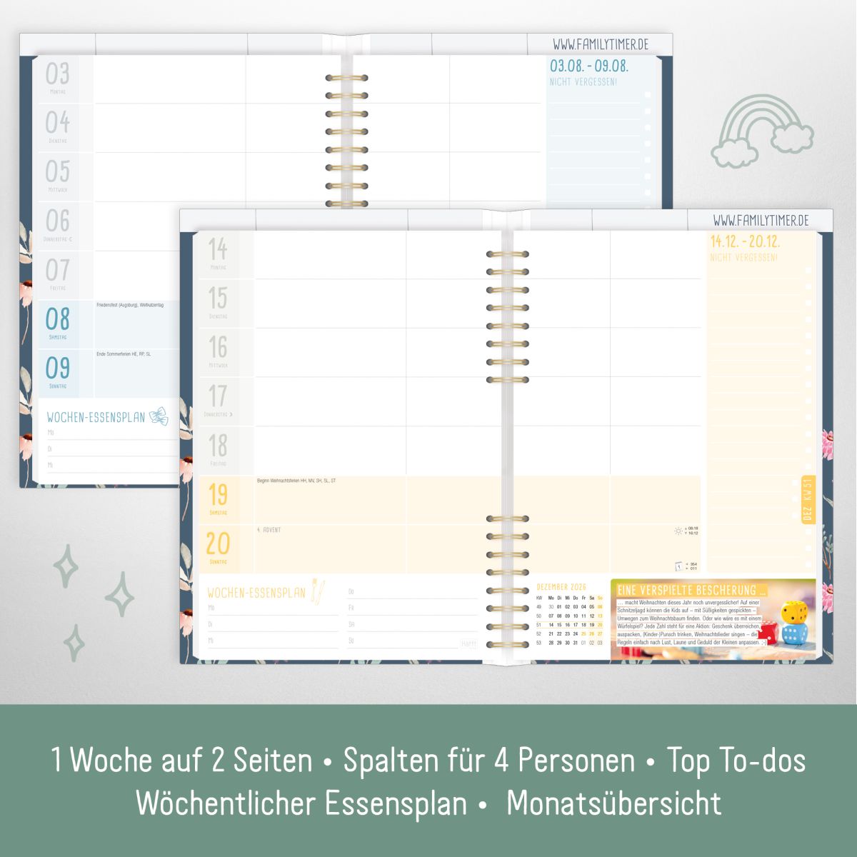 Family-Timer 2026 / A5+ / Flying Flowers / Häfft-Verlag