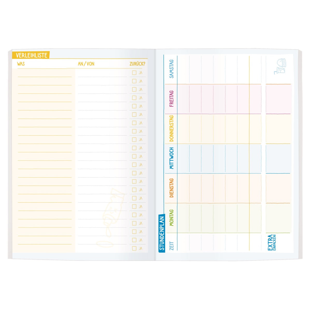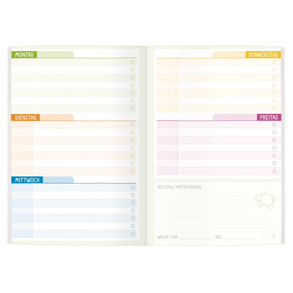 - undatiertes Hausaufgabenheft in fröhlichen Farben