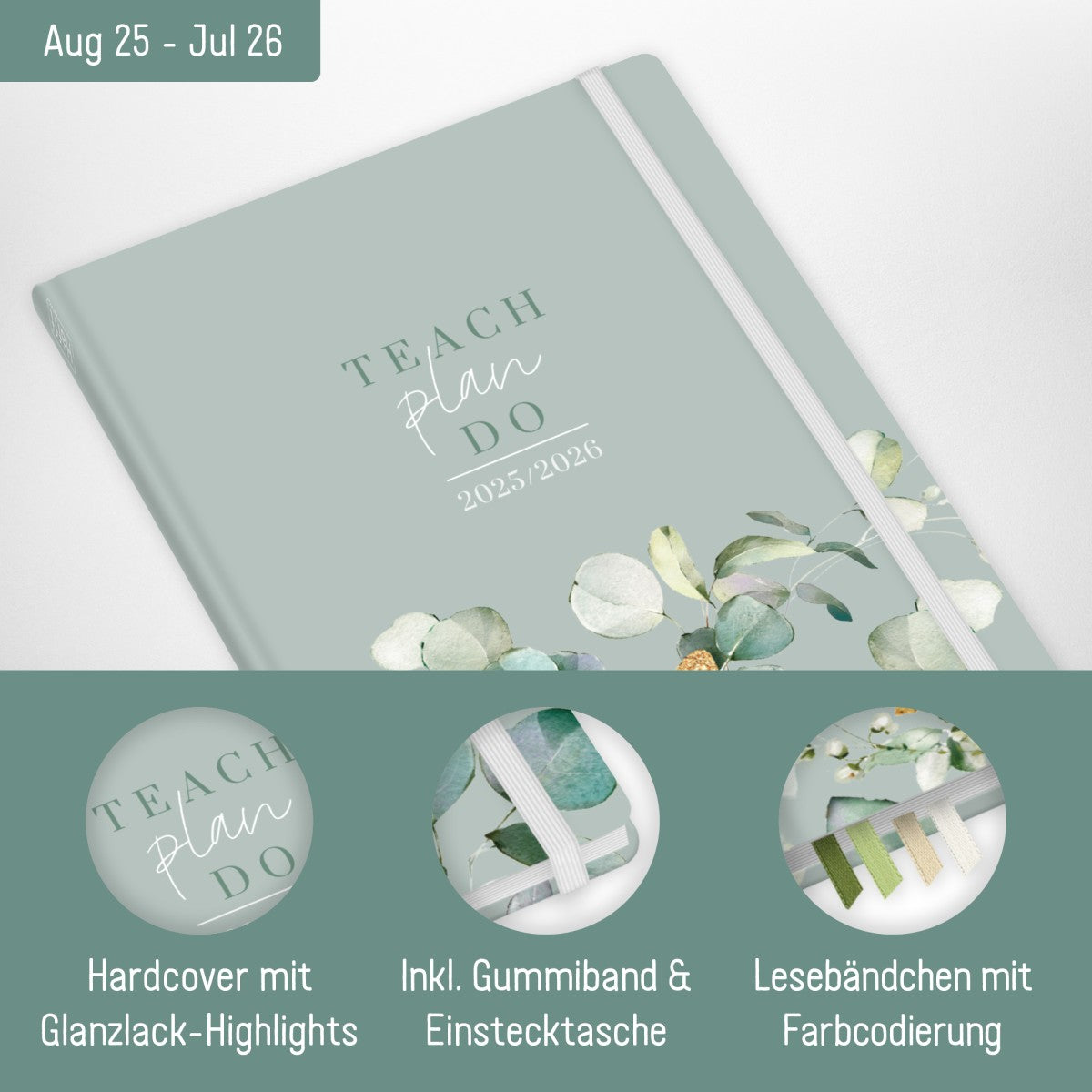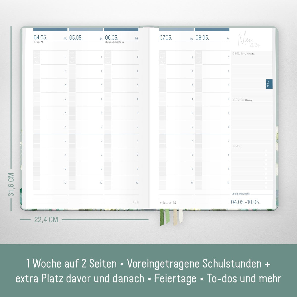 Häfft Lehrer-Planer 2025/2026 / A4+ / Minty Leaves