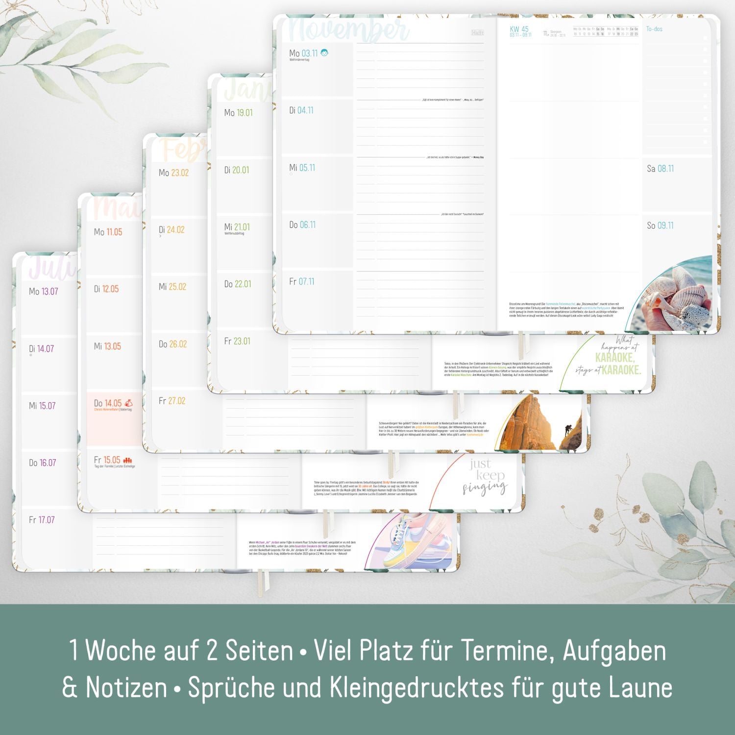- Wochenplaner mit Monatsvorschauen, witzigen Sprüchen, Funfacts u.v.m.