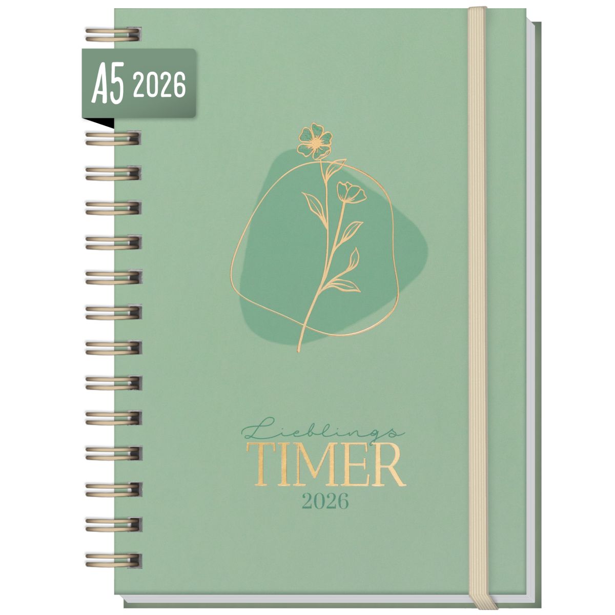 Lieblings-Timer 2026 / A5 / Green Flower / Häfft-Verlag