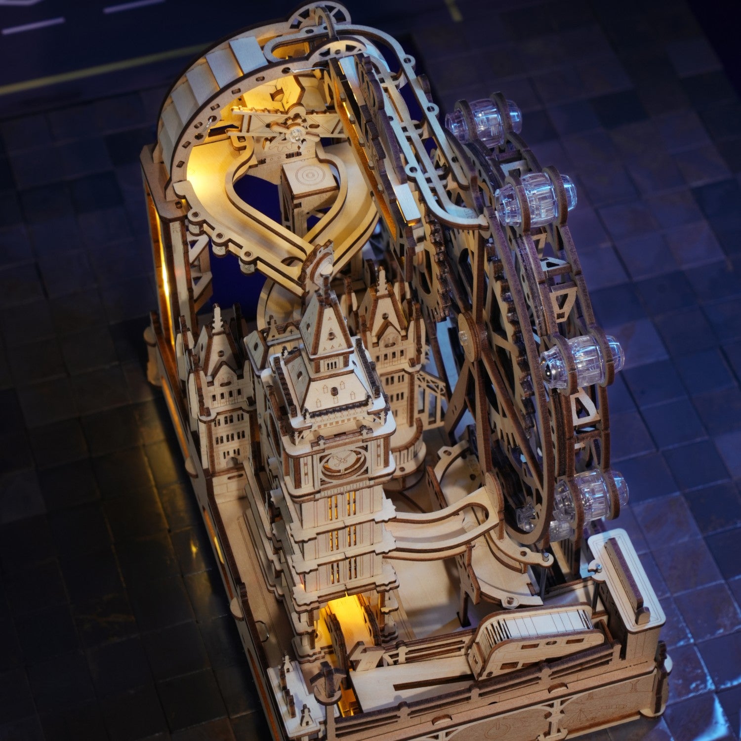 - die Stadtsilhouette Londons als 3D-Puzzle mit integrierter Murmelbahn
