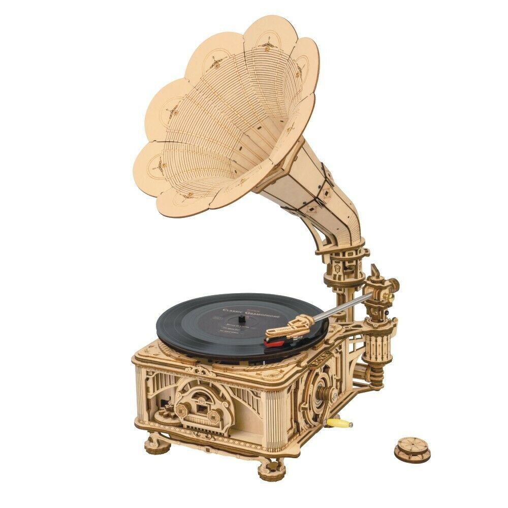 - ROKR 3D-Holz-Puzzle "Classical Gramophone" vollfunktionstüchtiger Plattenspieler