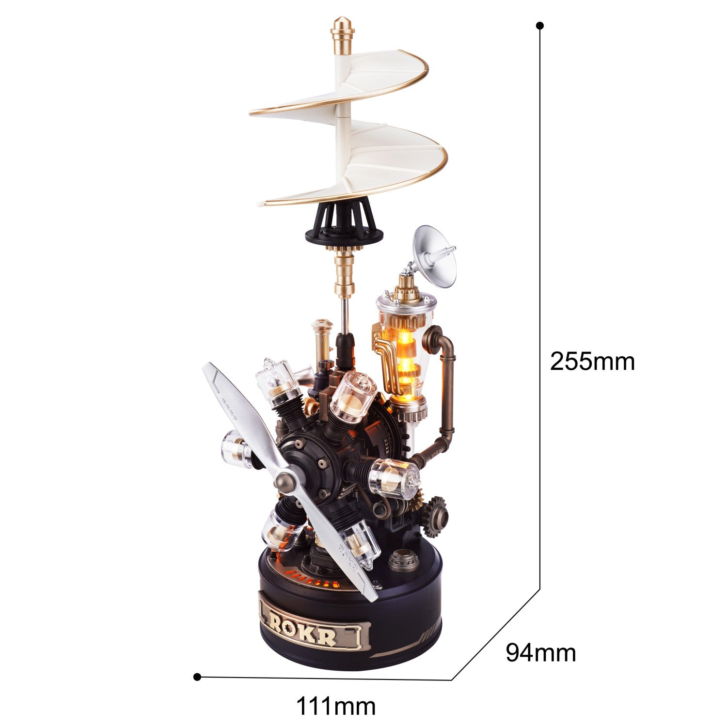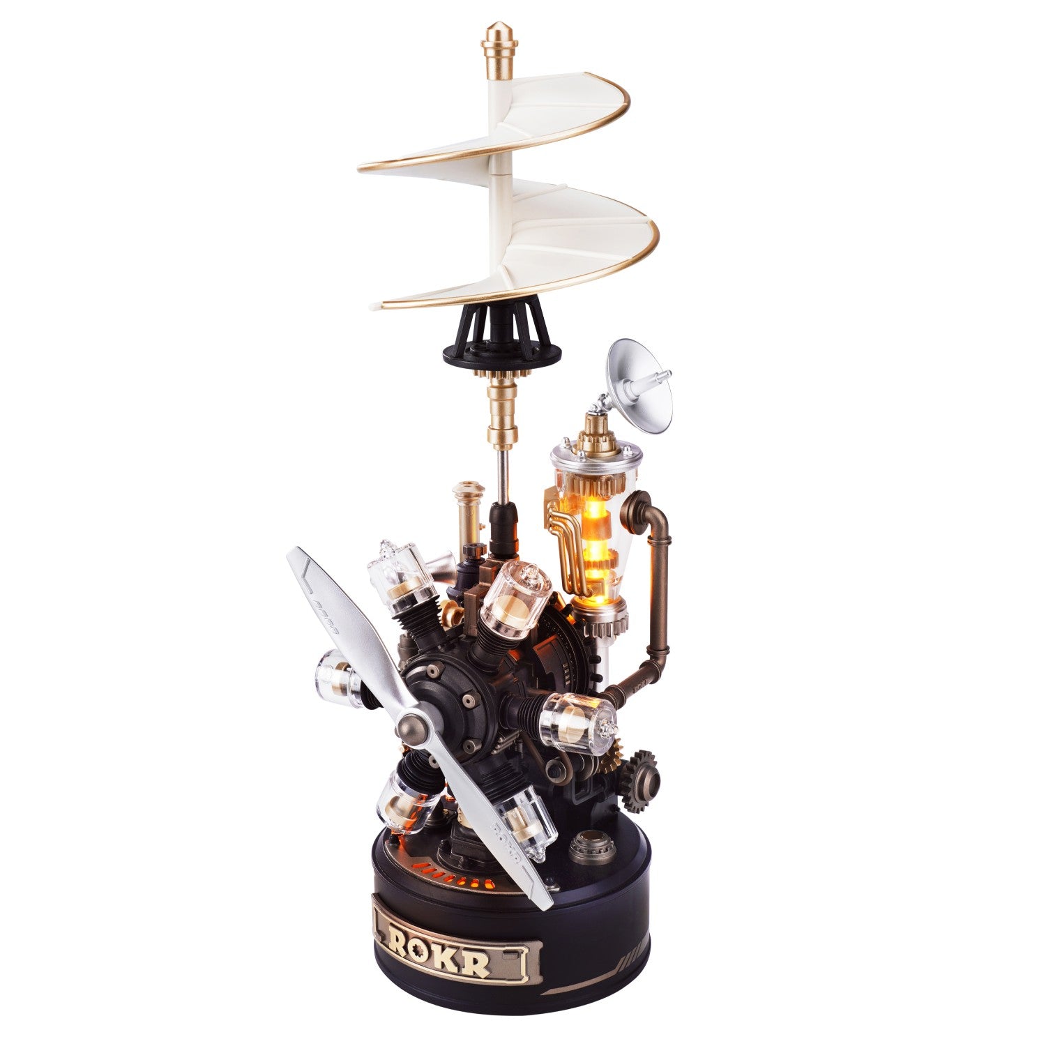 - mit Doppelhelix-Flügelprofil, Sechs-Zylinder-Motor, Zweiblatt-Propeller und Dampfmaschine nach Zeichnungen des berühmten Leonardo da Vinci